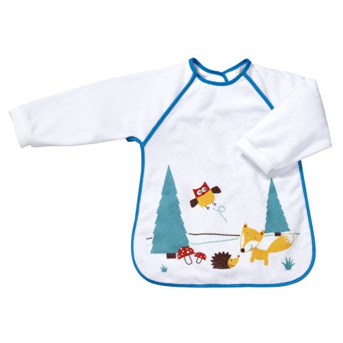 Bacino Bavoir à manches avec protection imperméable. En tissu-éponge doux ! Avec une doublure en plastique pour protéger contre l'humidité et une fermeture à scratch à l'encolure. Les manches longues élastiquées sont très pratiques. Dessus : 80 % coton, 20 % polyester Doublure : PEVA Galon : 100 % polyester Couleur : blanc/multicolore Lavage à 30°C Dimensions : 70 x 40 cm......