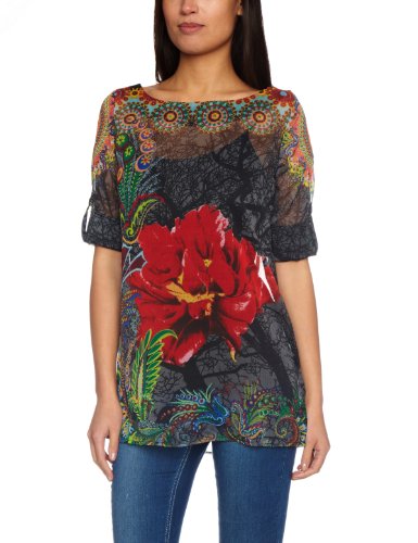 Desigual Blus Hannette - Blouse - Femme. - Jeu de transparence - coupe ample - Imprimés floral très colorés - 100% polyester......