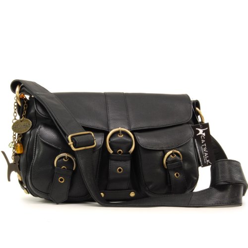 - DESCRIPTION DU SAC : Le cuir marron chocolat contraste admirablement avec les boucles, anneaux et pied en laiton antique. Ce sac au look exceptionnel est tout simplement très branché. Le cuir présente un toucher doux et un fini mat. Le grand compartiment est plutôt spacieux, car le sac présente une embase large. Il est doté de nombreuses poches pour ranger la monnaie, les stylos, les cartes de crédit, le téléphone mobile, l'i-Pod et bien d'autres petites choses. La longue bandoulière en cuir peut être réglée pour porter le sac sur l'épaule ou croisé. Intérieur doublé. Rabat principal et rabats des pochettes finis suède pour apporter une touche de luxe. Le sac s'ouvre en grand pour permettre un accès facile au contenu. La base du sac est plate équipée de pieds. Comme toujours, tous les sacs sont livrés avec le logo Cat détachable.