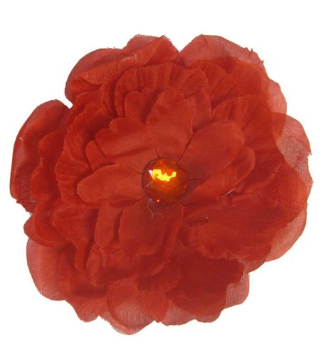 Pince à cheveux avec fleur pivoine à pétales couleur rouge. C'est une adorable pince à cheveux parfaite pour les bébés, bambins et filles de toutes âges. C'est extrêmement versatile, vpus pouvez pincer la fleur sur n'importe quel bandeaux,calotte ou simplement la pincée directement sur les cheveux. Ce difficile chemin pour trouver le crystral et la pierre au milieu ajouté une touche de charme si vous regardez....