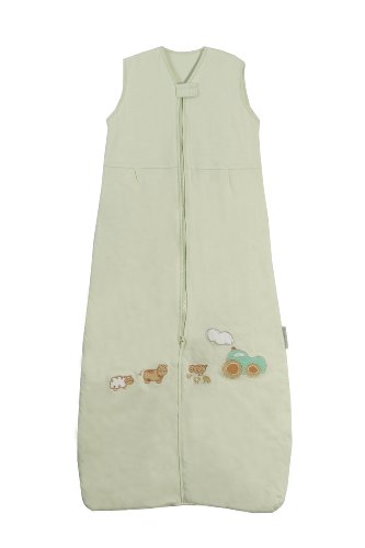- Une belle gigoteuse faite en 100% coton jersey doux et vert, avec un tracteur et des animaux de la ferme. Idéale tout au long de l'année, pour des chambres dont la température est située entre 15 et 21 degrés.