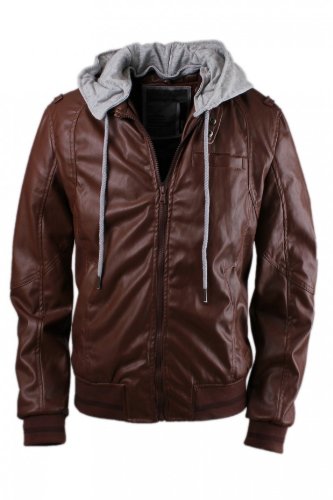VESTE HOMME 'SIXTH JUNE - AT12958' SIMILI CUIR NOIR & MARRON. Veste simili cuir marron homme tendance et fashion 'Sixth June'. Capuche grise clair amovible grâce à ses boutons. Fermeture zippée et multi - poches sur l'avant et une boutonnée à l'intérieur. Liens de serrage au niveau de la capuche. Composition - extérieure : 50% polyuréthane et 50% polyester, intérieure: 100% polyester. Agréable et fashion cette veste pratique avec sa capuche amovible, va vous rendre irrésistible....